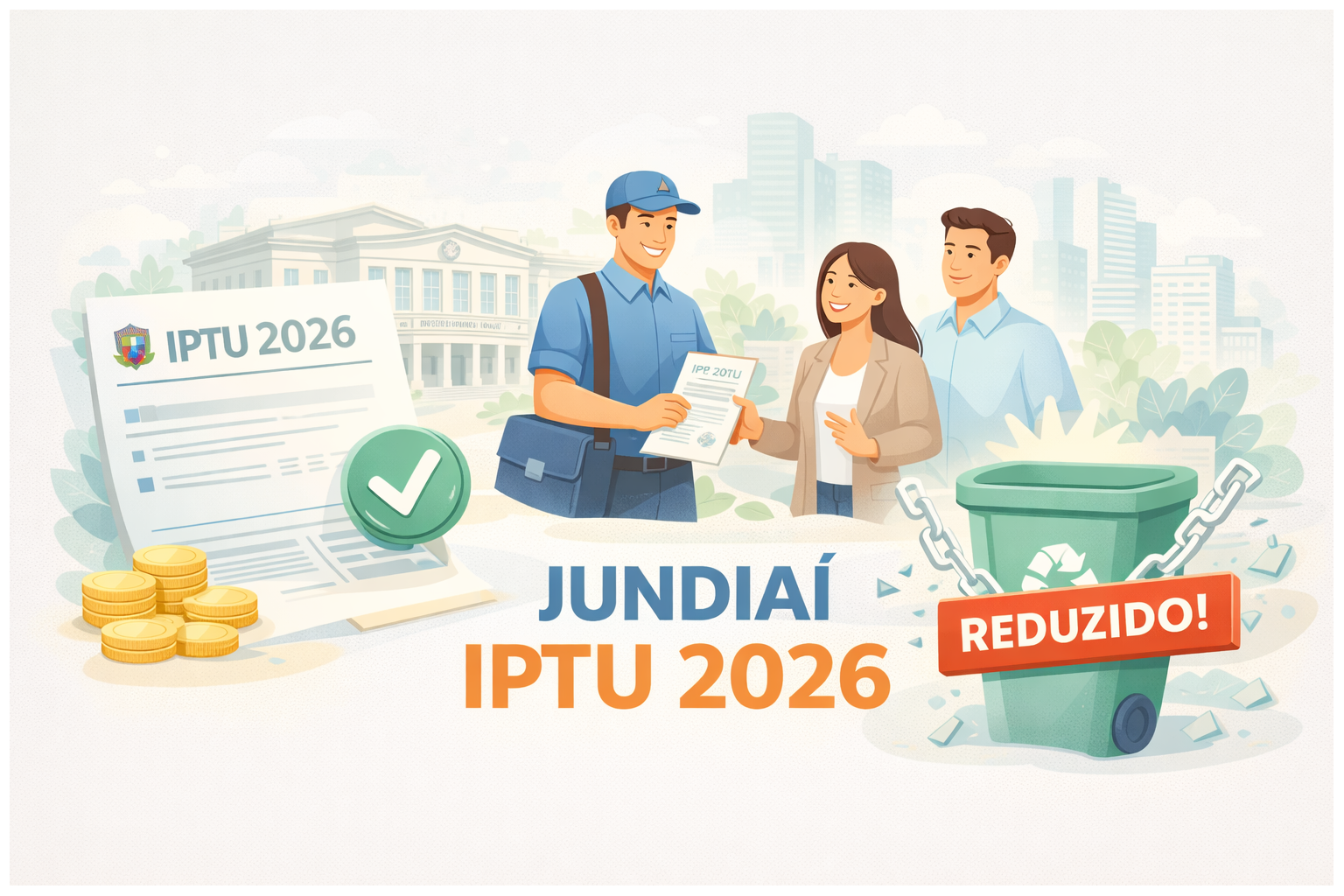 A Prefeitura reforça que não há aumento real no valor do IPTU em 2026. O imposto passa apenas pela correção monetária anual, com base na variação do INPC – Índice Nacional de Preços ao Consumidor, apurado pelo IBGE, referente ao período de dezembro do exercício anterior a novembro do exercício corrente, conforme previsto em lei. Saiba mais...